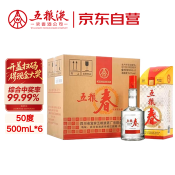 五粮液股份 五粮春 第一代 浓香型白酒 50度 500mL*6瓶 整箱原箱装