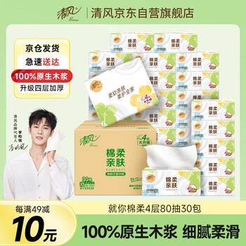 清风(APP)【李昀锐同款】抽纸 棉柔4层80抽*30包xs码 纸巾抽 新老包装交替