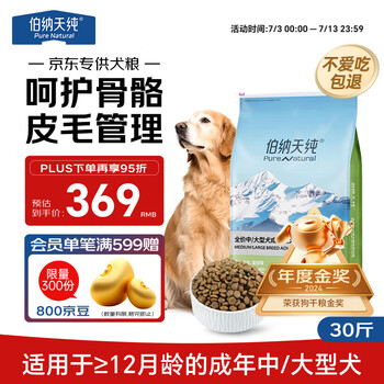 伯纳天纯中大型犬全价成年犬粮金毛宠物主粮羊肉蔓越莓15kg/30斤