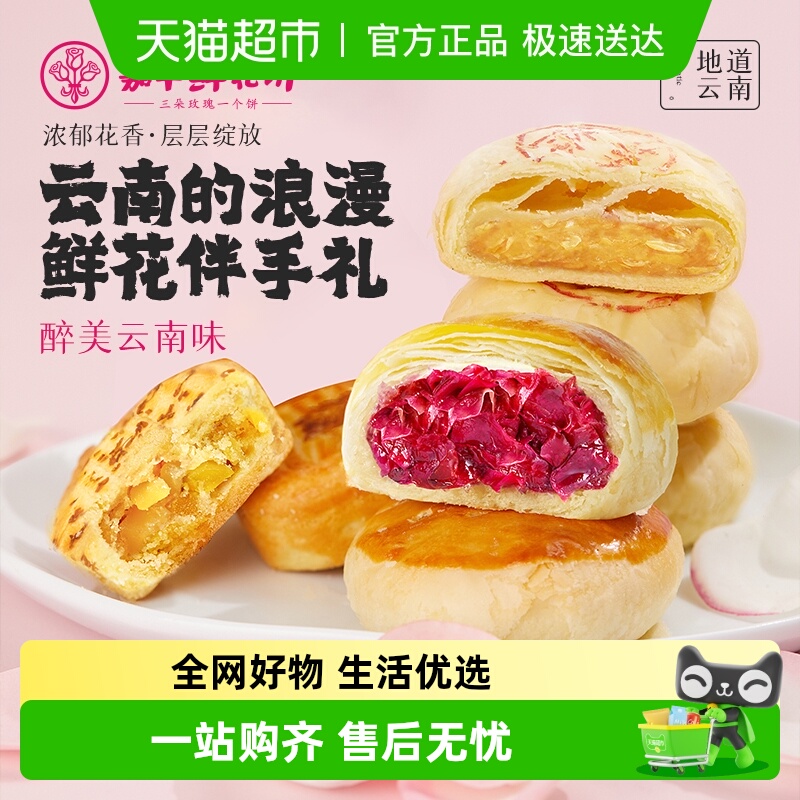 嘉华鲜花饼经典玫瑰饼云南特产茉莉花饼糕点心零食小吃伴手礼桂花