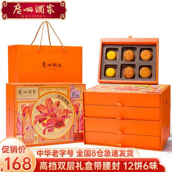广州酒家月饼礼盒 高端中秋节礼品广式蛋黄莲蓉 中华老字号送礼佳品团购 1010g 双层礼盒-心意好礼