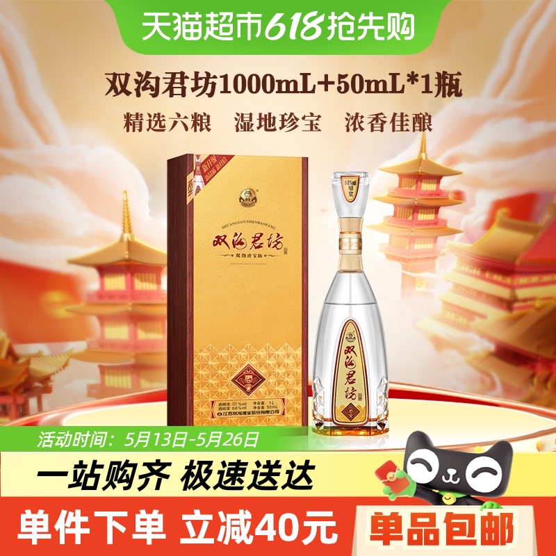 双沟珍宝坊君坊52度(1000mL+50mL)浓香型白酒