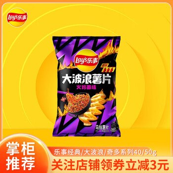 乐事(Lay's) 经典/大波浪/奇多系薯片 玉米棒40g/50g 单袋装办公室休闲零食 大波浪火鸡面味40克