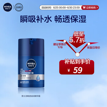 妮维雅(NIVEA)男士【王子奇同款】补水保湿拒绝油感水活畅透滋润精华霜50g干皮
