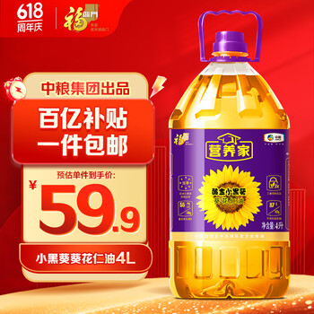 营养家 食用油 黄金小黑葵 葵花仁油 4L 物理压榨一级 中粮福临门出品