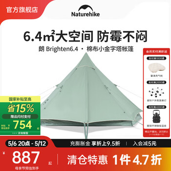 NatureHike挪客朗6.4棉布金字塔帐篷户外野营印第安露营多人大型蒙古包装备 尤加利青/6.4㎡/不含地布