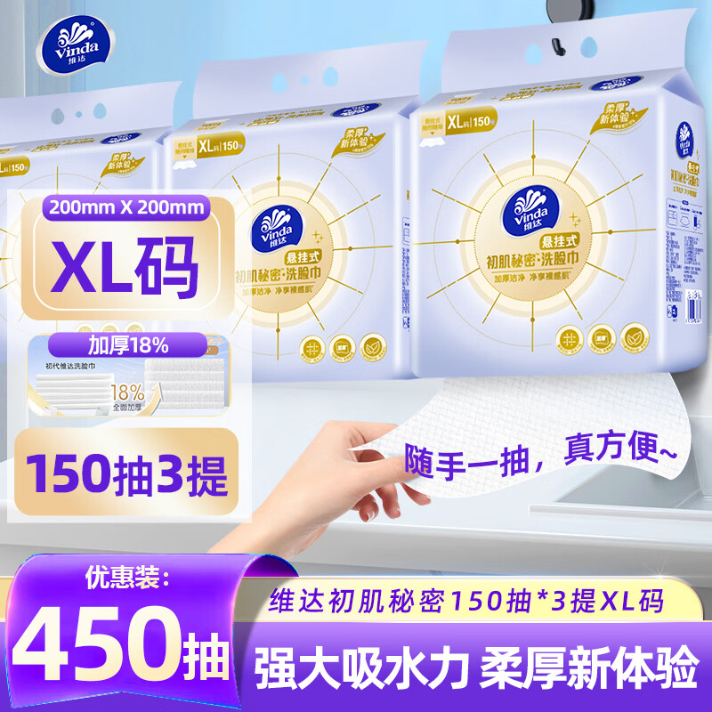 维达悬挂式洗脸巾家用洗面巾加厚洁面巾婴儿宝宝擦脸纸巾挂抽加大实惠 3包【整箱装】