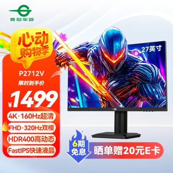 泰坦军团 27英寸4K超清160Hz双模320Hz FastIPS屏 HDR400硬件低蓝光 10Bit 1ms 旋转升降电竞显示器 P2712V