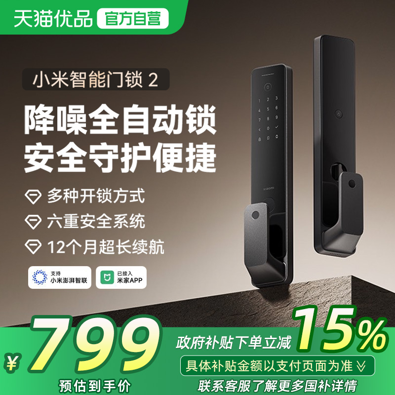 【政府补贴15%】小米智能门锁2家用全自动指纹锁密码锁防盗电子锁
