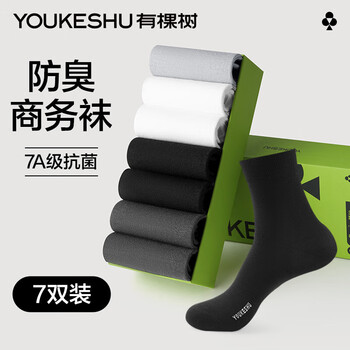 有棵树男士袜子男7A抗菌百搭舒适防臭吸汗透气中筒袜春夏棉袜7双装