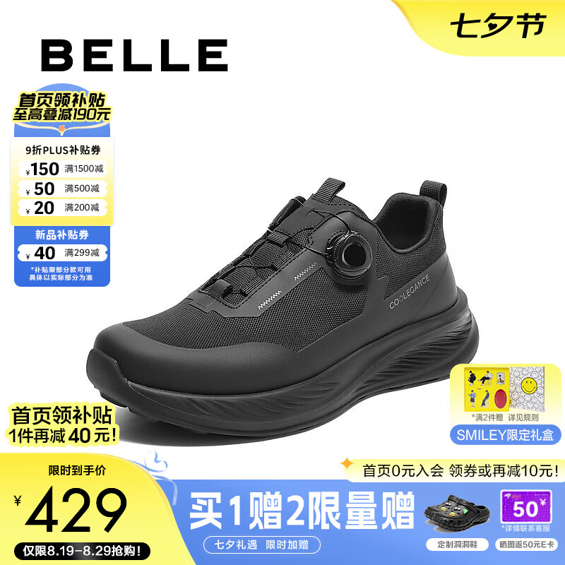 百丽七夕礼物厚底健步鞋男25秋新简约户外潮搭运动鞋A2048CM5【预售】 黑色 40 (250mm)