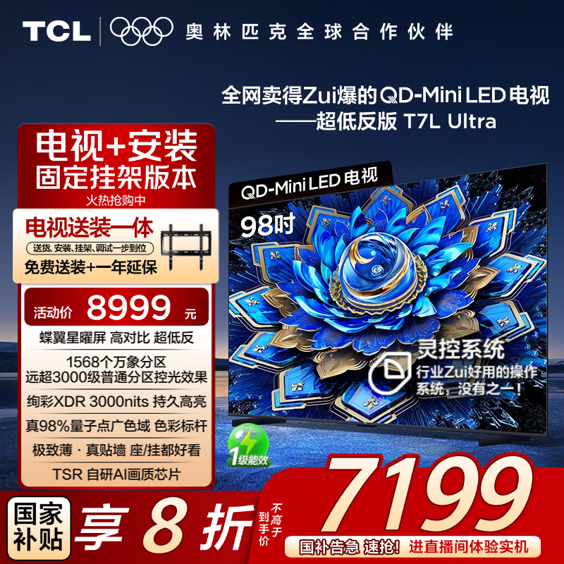 TCL 85T7L Ultra 包安装版【固定挂架送装一体】85英寸 QD-Mini LED电视 T7L Ultra+安装含挂架