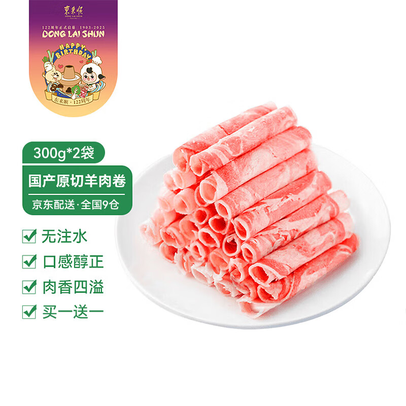 东来顺 国产原切羊肉卷 300g 羊肉片 内蒙古羔羊 火锅食材 羊肉生鲜 羔羊切片300g*2袋