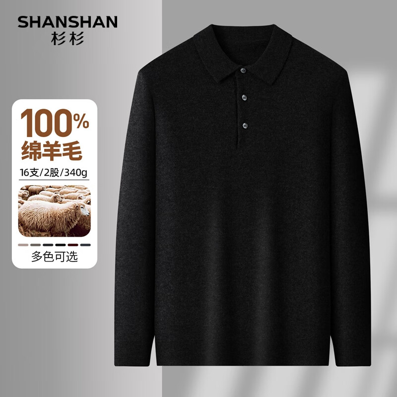 SHANSHAN杉杉【100%羊毛】羊毛衫秋冬季新款POLO翻领长袖内搭亲肤保暖上衣 黑色 2XL /185