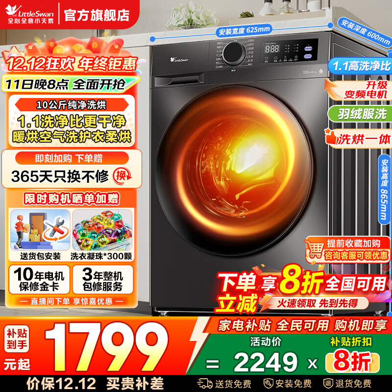 小天鹅(LittleSwan)滚筒洗衣机全自动 10/12公斤大容量超薄机身内衣洗 1.1高洗净比 一级能效 以旧换新 家电补贴 【10公斤洗烘】暖烘空气洗+护衣柔烘