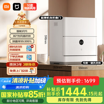 米家小米台式洗碗机5套S2母婴级认证 超薄机身 洗消一体 80℃热风烘干 智能识污 APP操控QMDW0502M