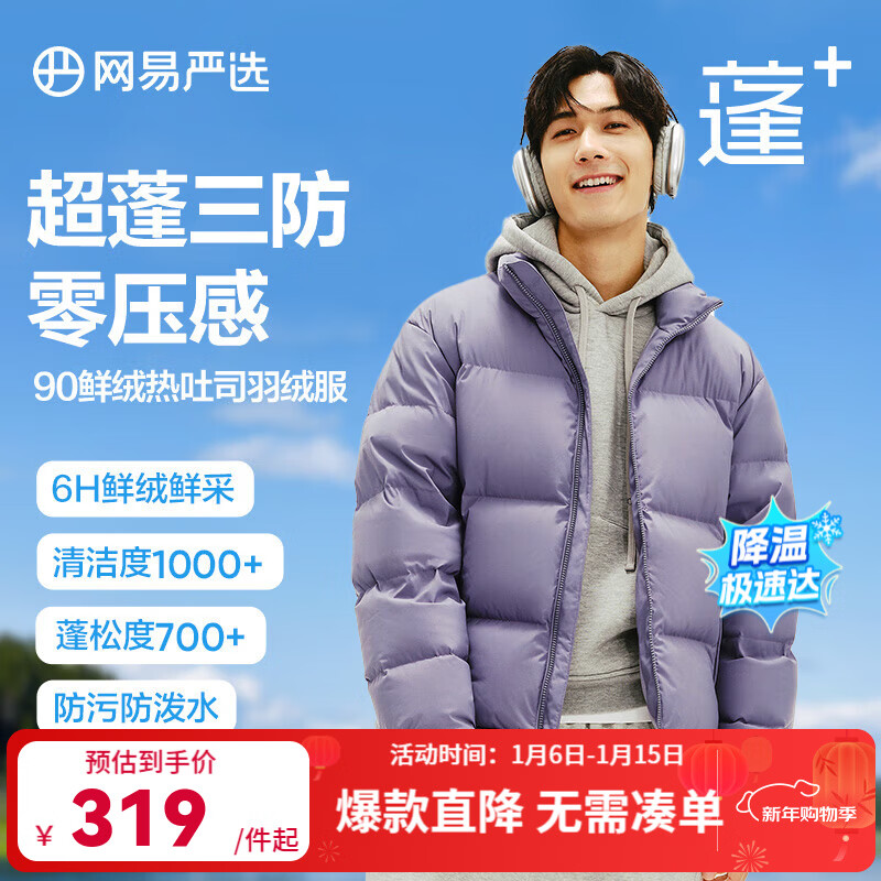 网易严选【断码清仓】热吐司pro三防超蓬零压加厚90白鸭绒鲜绒面包 螺甸紫-立领纯色 XS