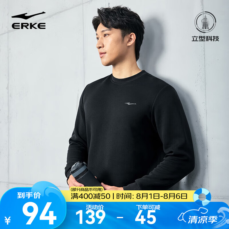 鸿星尔克卫衣男秋季新款舒适休闲跑步运动服上衣套头衫长袖圆领卫衣男装 【2013】正黑-立型科技 XL