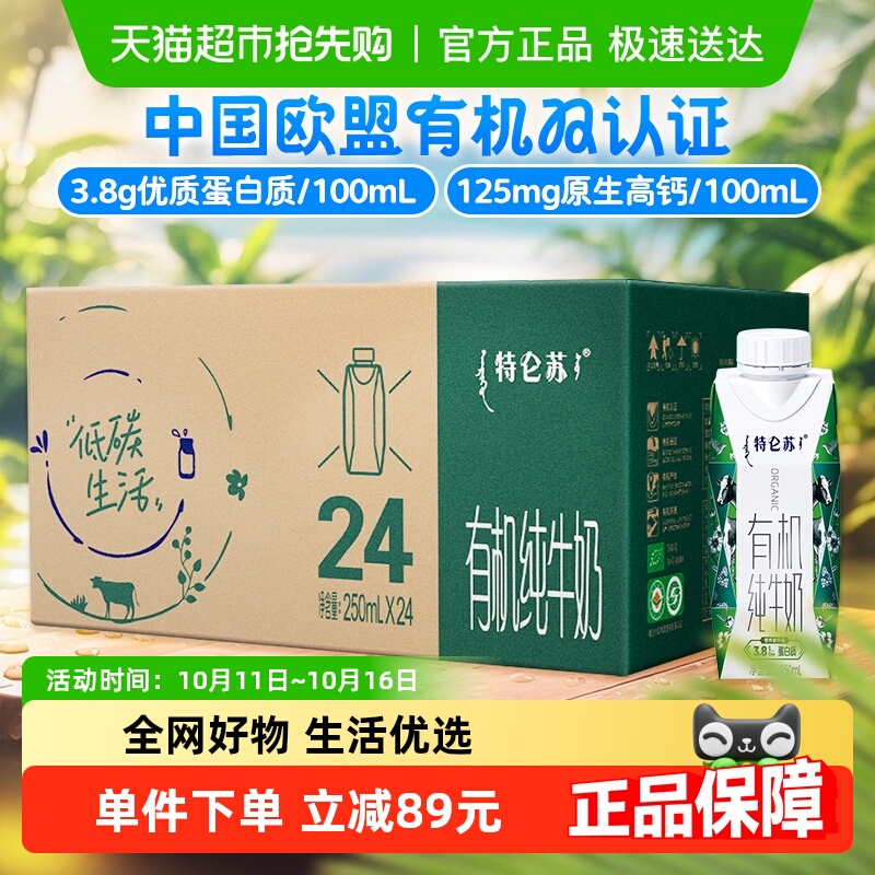 蒙牛特仑苏有机纯牛奶梦幻盖250ml*24盒营养牛奶3.8g优质蛋白