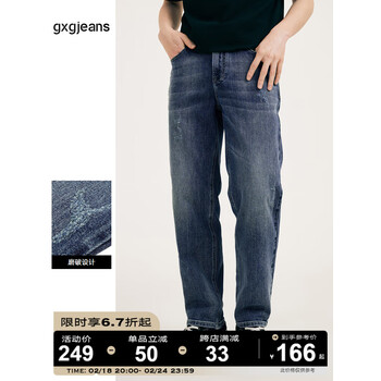 gxg.jeans男装2023年秋冬季磨破做旧设计复古休闲水洗加绒牛仔长裤 牛仔蓝-Y 180/XL
