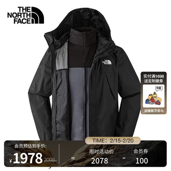 北面(The North Face)三合一冲锋衣男软壳内胆户外运动防水保暖外套24冬季新品|89B1 8UR L /175/100