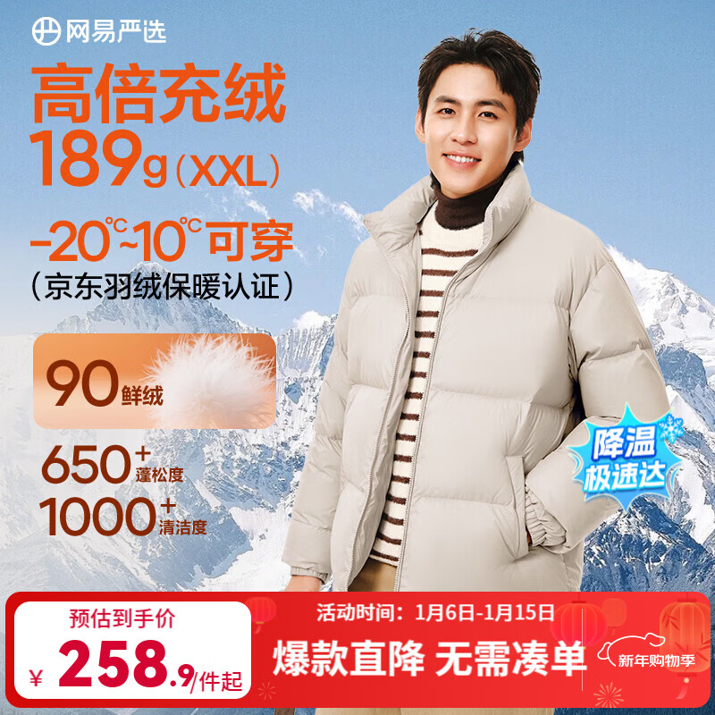 网易严选25新品90鸭绒超蓬羽绒服休闲面包服石墨烯保暖轻量抗菌防泼水 25秋冬立领-卡其米 L