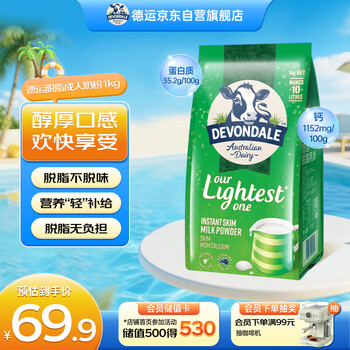 德运(Devondale)脱脂奶粉1kg 调制乳粉儿童学生成人奶粉高钙高蛋白澳洲原装进口