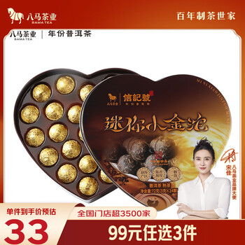 八马茶业普洱茶 迷你小金沱云南熟普72g 铁盒装茶叶自己喝