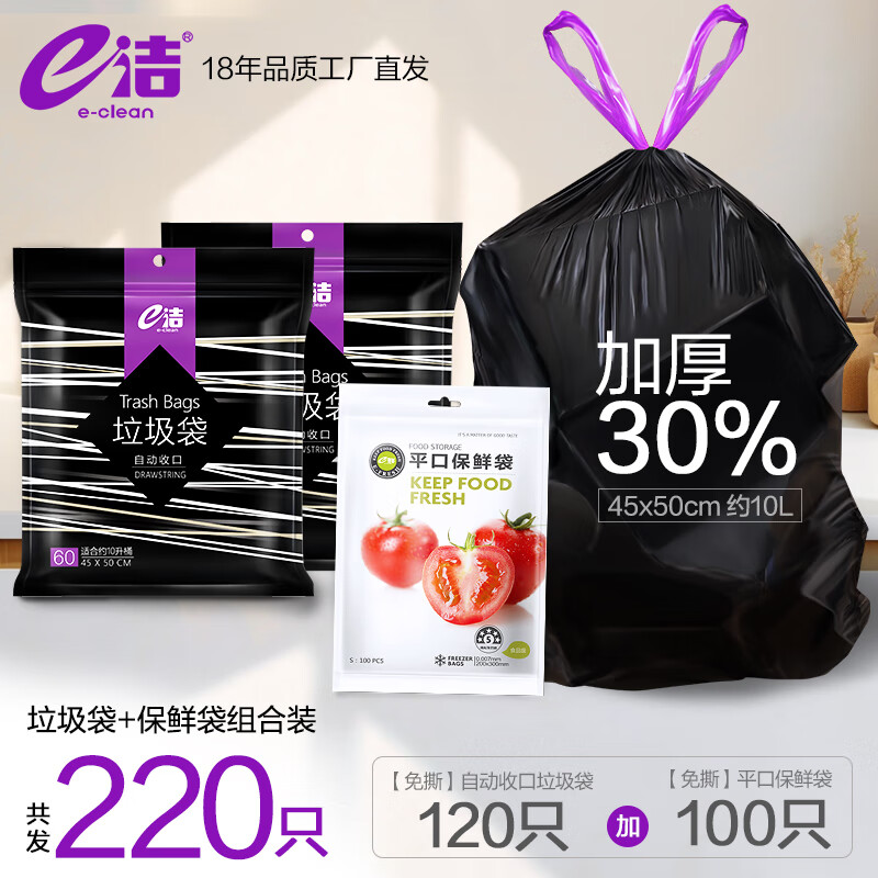 e½à³éÉþÀ¬»ø´ü¼ÒÓóø·¿ÎÀÉú¼äÇå½àרÓúÚÉ«¼ÓºñʽÃâ˺ʽ ¹²220Ö» 45x50cm¼Óºñ³éÉþÀ¬»ø´ü120Ö»¡¾+100Ö»±£ÏÊ¡¿