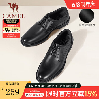 骆驼(CAMEL)父亲节礼物皮鞋男士商务牛皮内增高简约舒适通勤系带英伦风正装鞋 A032211370 黑色 42
