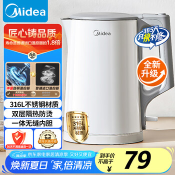 美的(Midea)电水壶烧水壶家用1.5L大容量316不锈钢无缝内胆电热水壶双层保温防烫自动断电MK-HJ1566-PRO