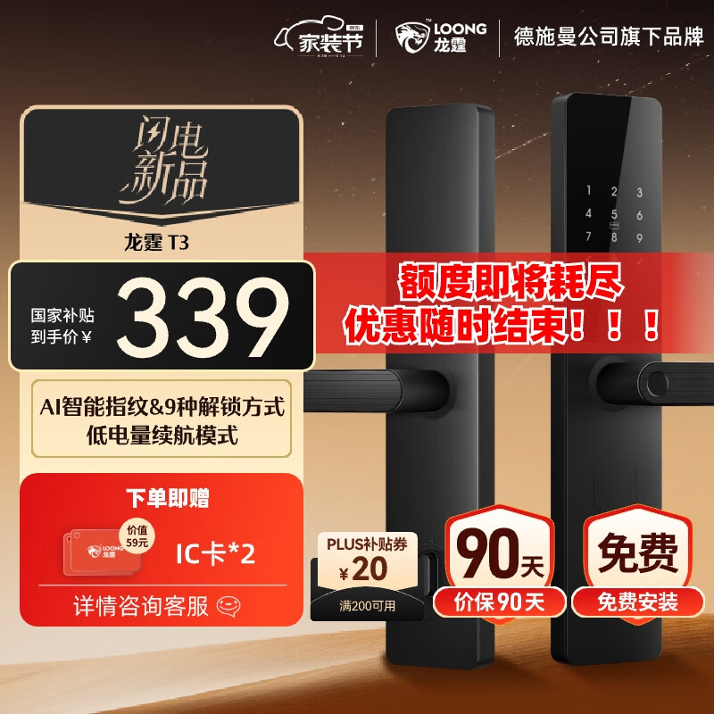 龙霆智能门锁电子锁指纹锁入户门密码锁执手款防盗门锁上门安装T3