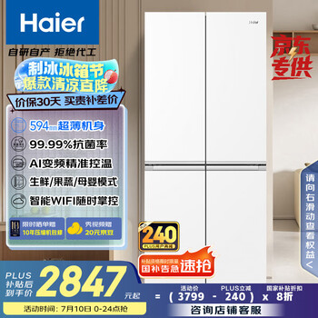 海尔(Haier)小红花-绽放版500升594mm专业超薄十字T型四门一级能效家用电冰箱BCD-500WGHTDEDWVU1国家补贴20%