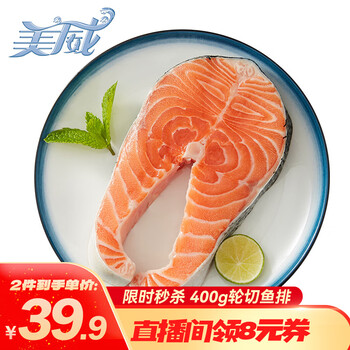 美威 冷冻智利轮切三文鱼排2-3片净重400g 大西洋鲑鱼 海鲜水产鱼类