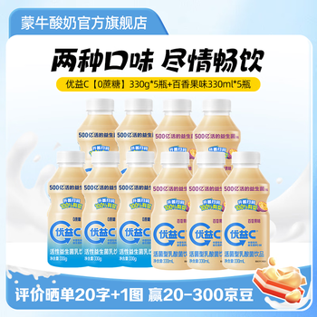 蒙牛优益C乳酸菌饮品冷藏饮料【0蔗糖】330g+百香果味330ml共10瓶