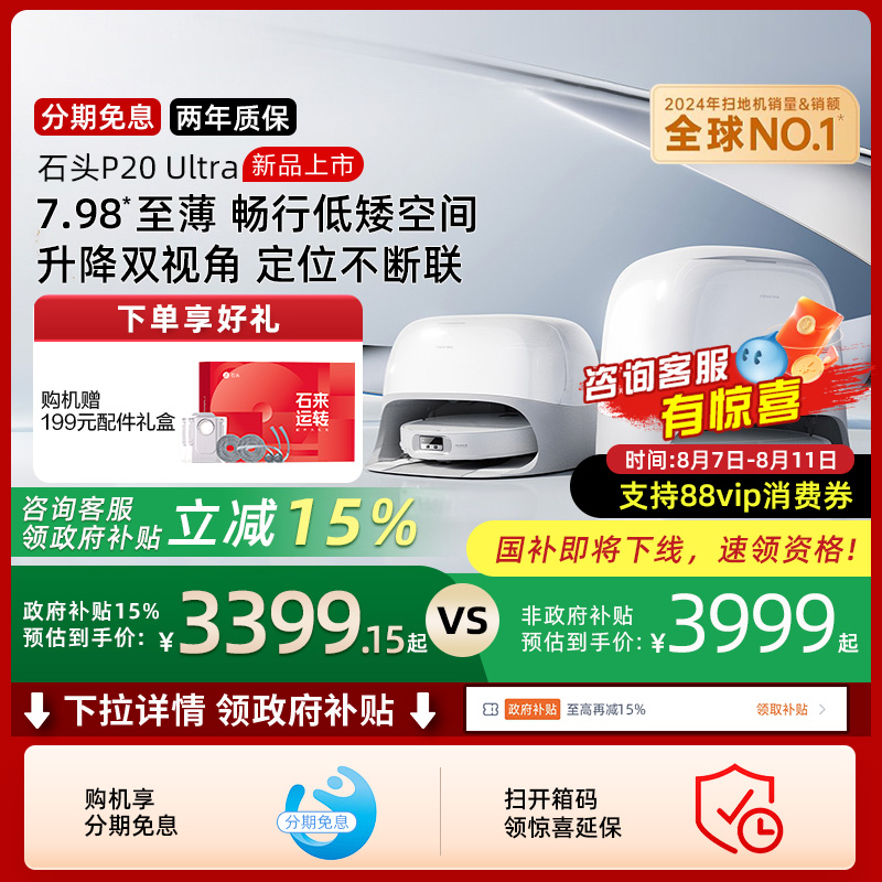 【全国国补15%】石头P20 Ultra扫地机器人吸拖一体自清洁新品家用