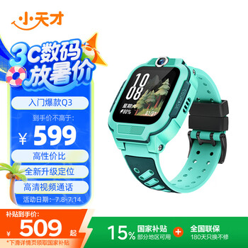 小天才儿童电话手表Q3【新品上市】玉髓绿AI精准定位防水大屏视频通话学生智能手表移动支付男女表