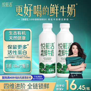 悦鲜活鲜牛奶 有机780ml*2瓶牛奶【郭晶晶推荐】高钙低温鲜奶