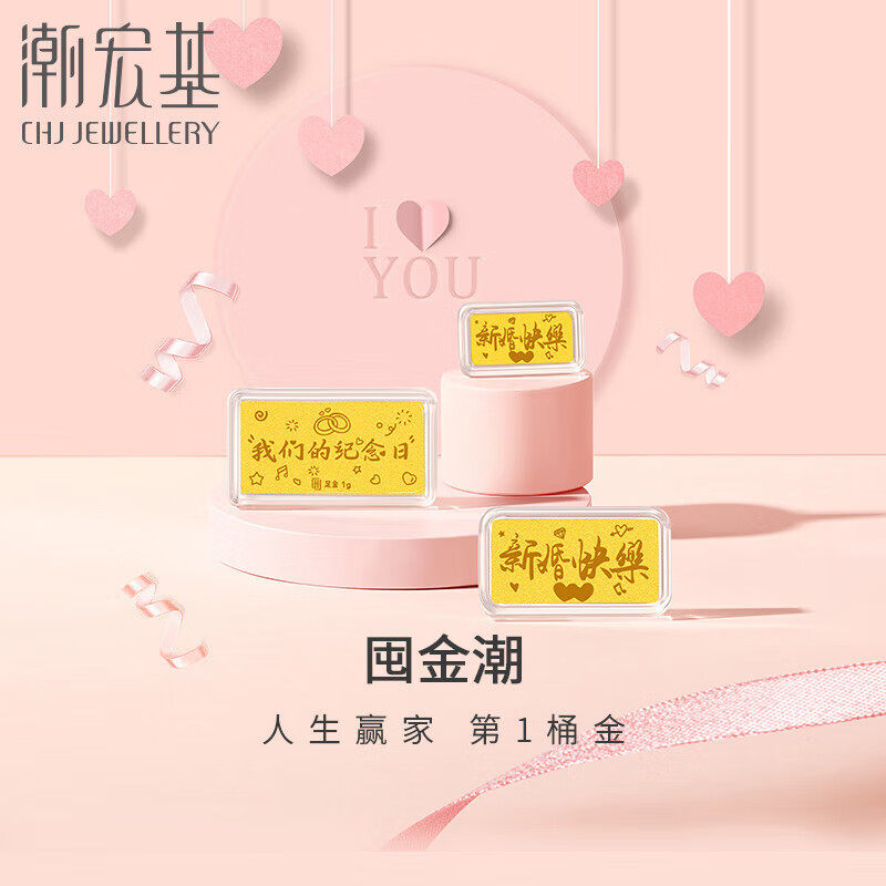 潮宏基母亲节礼物 第1桶金足金金条黄金投资金条新婚纪念日礼物情侣礼物 纪念日金条 1克