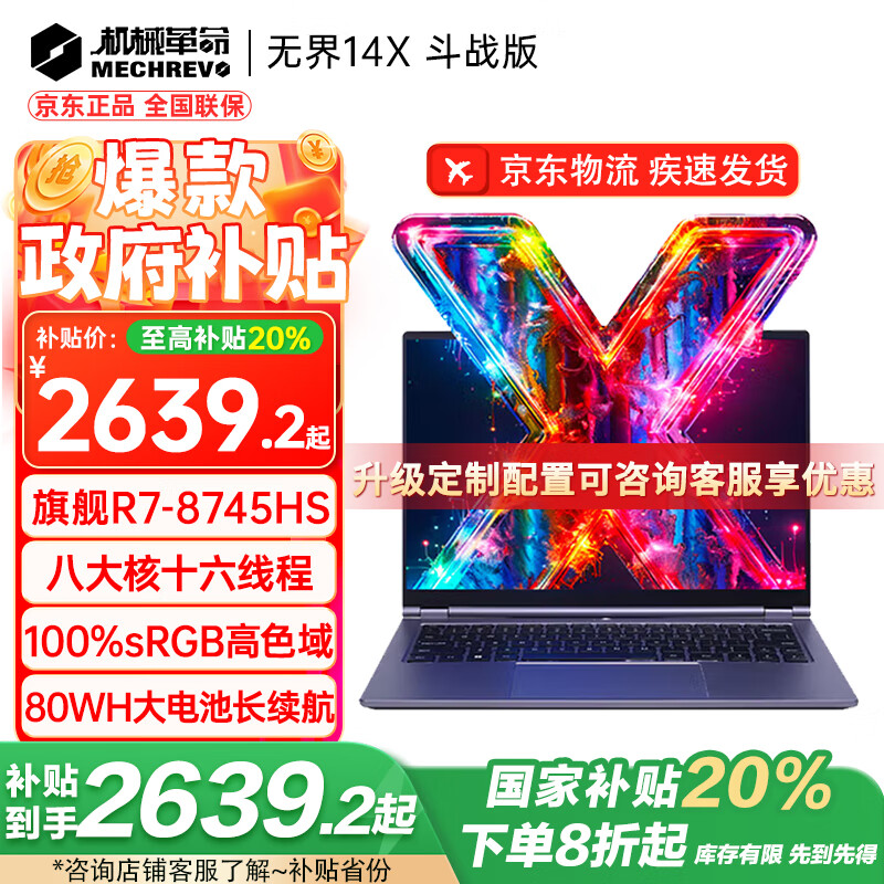 机械革命(MECHREVO)无界14X 斗战版 2025旗舰锐龙7高性能轻薄本15X学生设计办公游戏笔记本电脑 14X斗战版 R7-8745HS/高色域屏幕 16G内存/512G疾速固态