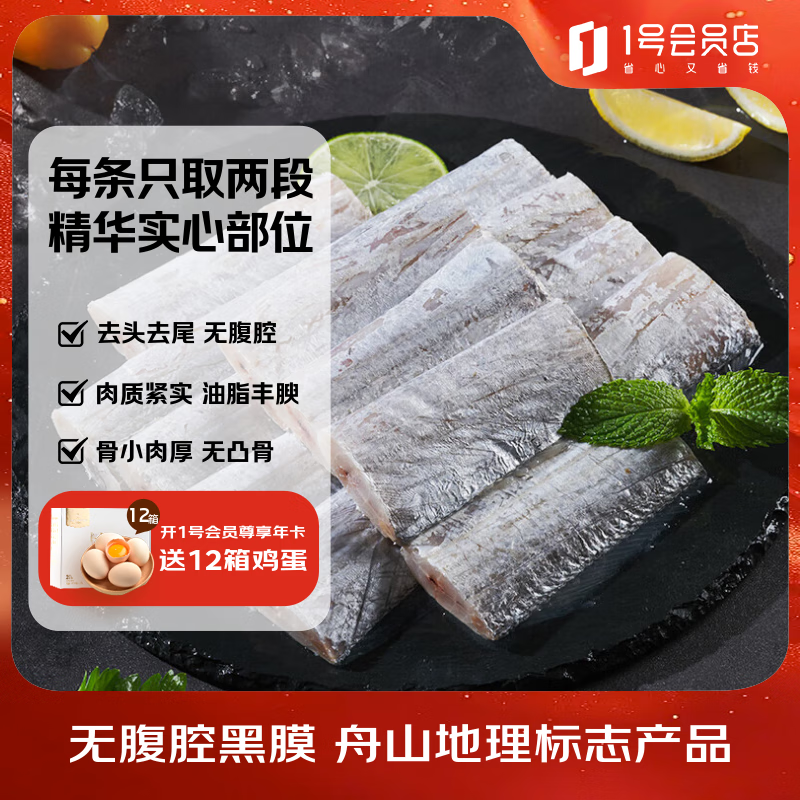 1号会员店冷冻舟山实心带鱼段(400g*3袋) 1.2kg 无内脏 地理标志 鱼类生鲜