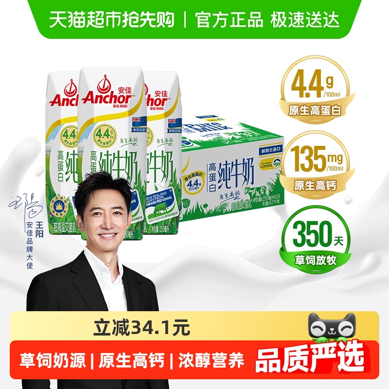 【进口】安佳草饲4.4高蛋白全脂纯牛奶新西兰进口草饲营养早餐奶