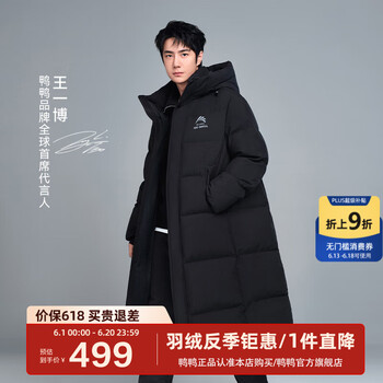 鸭鸭(YAYA)王一博极寒泡芙羽绒服女士长款过膝加厚户外情侣冰壳东北防寒外套 青光黑色 XL /180(充绒273克)