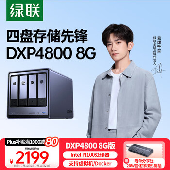 绿联私有云DXP4800 8G版四盘位NAS网络存储个人云硬盘AI家庭服务器 手机平板扩容适用iPhone16