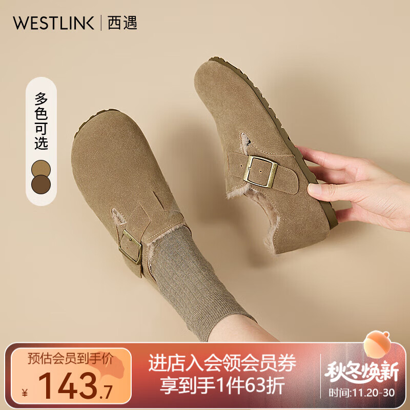 西遇全包勃肯鞋女加绒2025冬新款软底棉鞋保暖一脚蹬毛毛鞋 卡色 (预售20天) 36 (230mm)