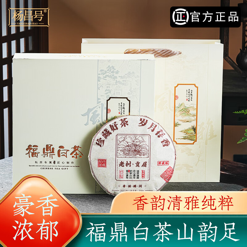 杨昌号2015年正宗福建福鼎白茶老树贡眉白茶枣香药香型白茶礼盒装350g饼 福鼎白茶350g/饼