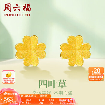 周六福(ZLF) 黄金耳饰女小金花四叶草耳钉足金999首饰 计价 0.73g