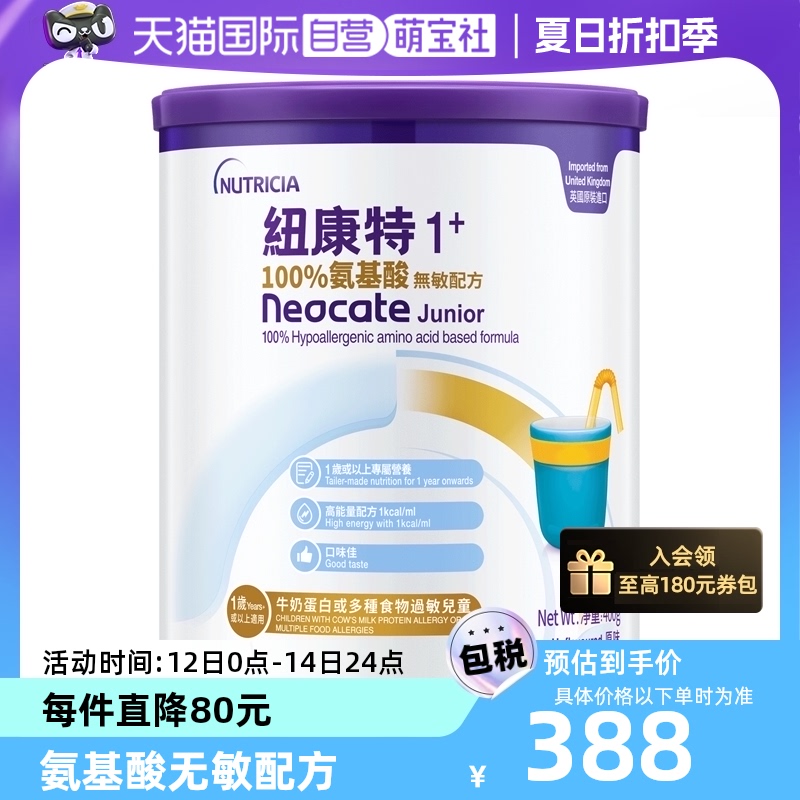 【自营】港版纽康特氨基酸无敏配方粉1+段 1岁以上 400g 英国水解