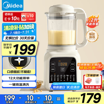 美的(Midea)破壁机家用小型1-2人用 1.2L轻音多功能全自动豆浆机五谷杂粮料理辅食机榨汁机国家补贴PB50G2-001