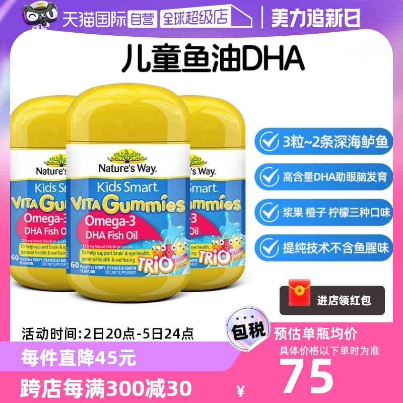 ¡¾×ÔÓª¡¿¼Ñ˼ÃôÇàÉÙÄê²¹ÄÔ¶ùͯdhaÈýÉ«ÓãÓÍÈíÌÇÓã¸ÎÓÍ60Á£*3Æ¿